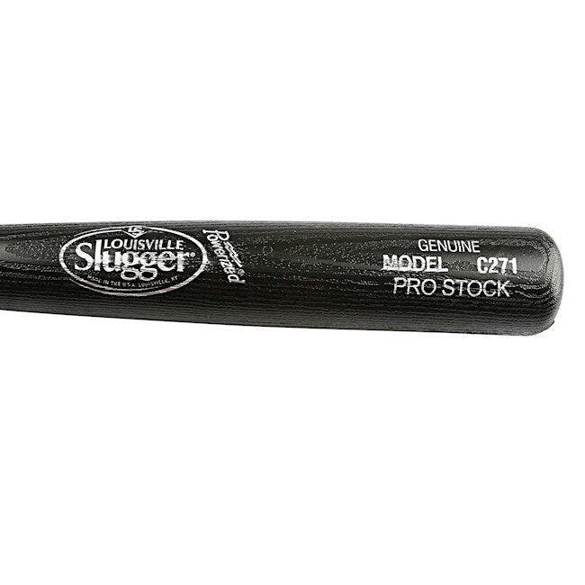 Louisville Slugger exact replica of a C271 34" Big League bat. Set includes one plastic baseball and one bat with authentic wood grain look. Bat color is black and ball color is white.
