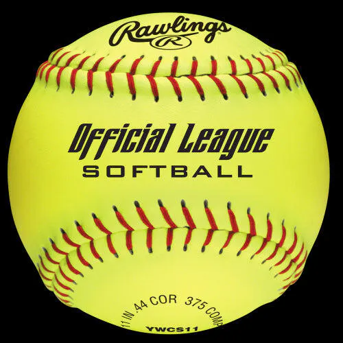 These 11" official league recreational softballs have .44 C.O.R. and 375 lbs compression.